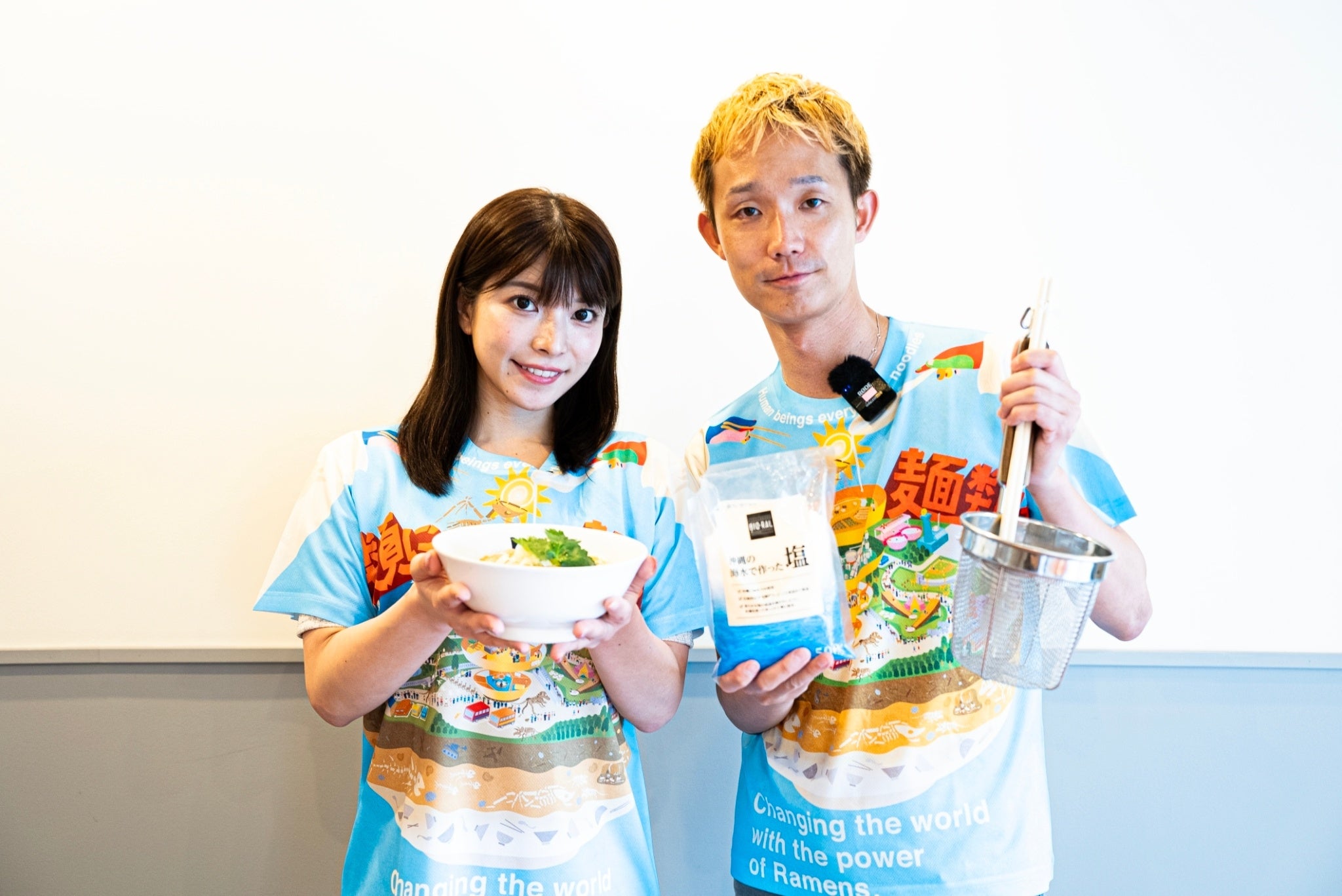 「あいの潮らーめん」は、上原亜衣さんが厳選した塩を使用しており、イベント当日は先着50名様限定で、らーめんに上原亜衣さんが塩を吹きかける「潮トッピング」のパフォーマンスをお楽しみいただけます。