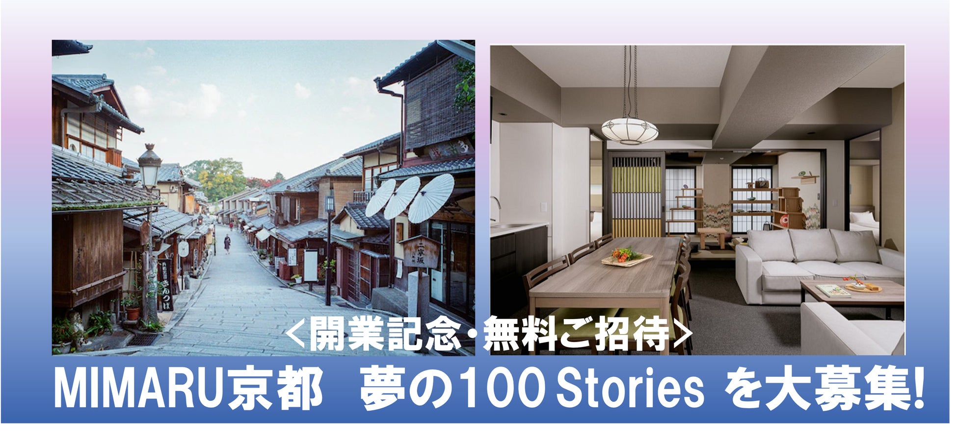 『MIMARU SUITES 京都CENTRAL開業記念』「MIMARU京都 夢の100 Stories“みんなと京都”募集」