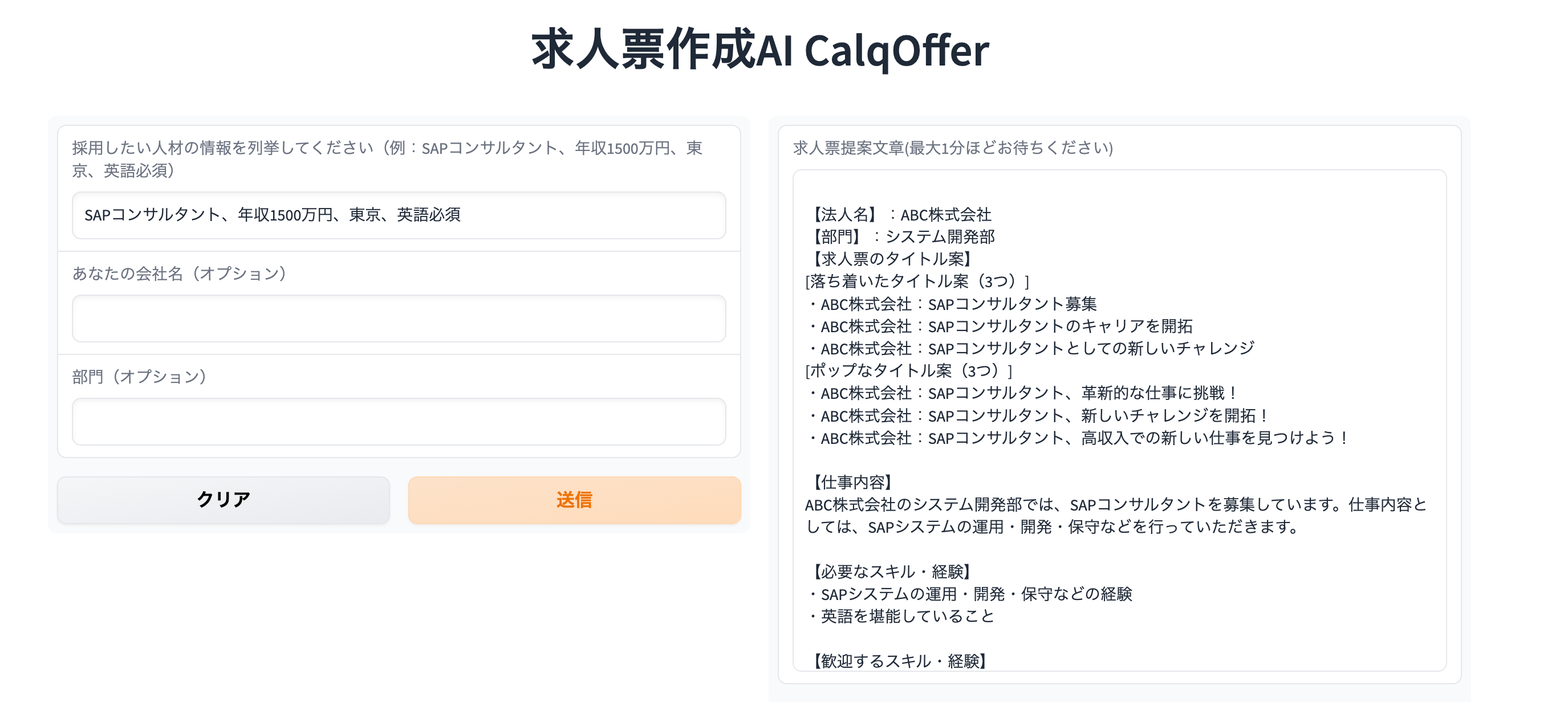 世界最先端!ChatGPT API[gpt-3.5-turbo]搭載 CalqOffer無料提供スタート!求人票作成の手間を大幅削減