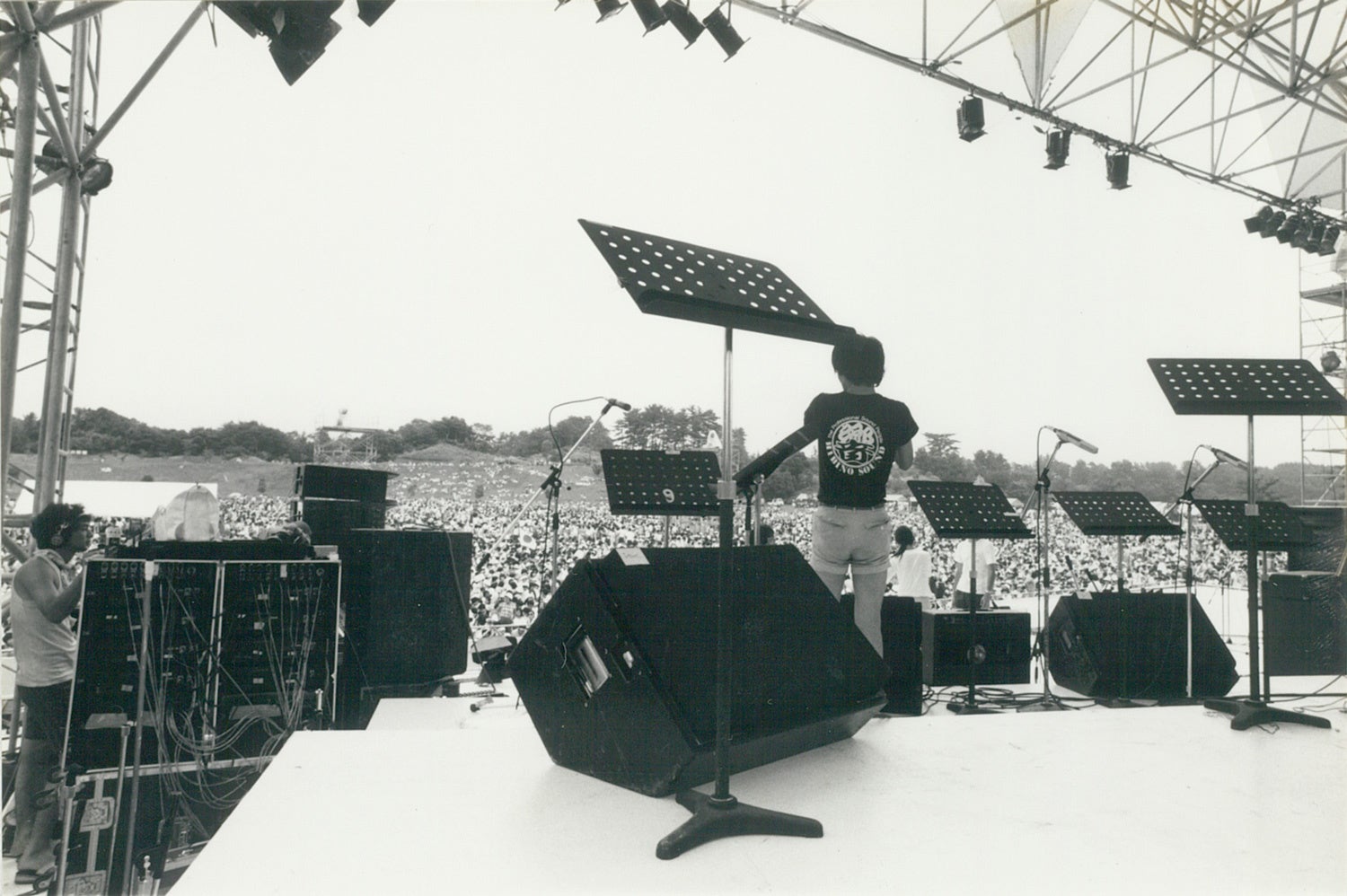 「HM-151」は、ヒビノのコンサート音響事業部「ヒビノサウンド」が1979年に開発した、コンサートのステージ上でアーティストに音を届けるモニタースピーカーです。日本のロックコンサートの黎明期であった1970年代、より大きな音をより良質に鳴らすため、自社開発や改造によって生みだしたオリジナル機材が多々ありました。観客に大迫力の音を提供すると同時に、アーティストが演奏しやすい環境をつくることも音響エンジニアの重要な役割です。ヒビノは大音量・高音質を実現するスピーカーシステムの開発にとどまらず、国内他社に先駆けてアーティストによい音を返すモニターシステムの自主開発にも力を注ぎ、HM-151をはじめとする「モニター専用システム」を完成させました。アーティストの望む音を的確に提供するヒビノのモニターエンジニアと専用システムは、アーティストの厚い信頼を集めました。計300台製造し、2013年まで全台が稼働していましたが、2024年現在は90台まで数を減らしました。最新鋭の音響機材を世界屈指の規模で保有する中、今なおHM-151の音を愛しつづけるアーティストのステージで稼働しています。