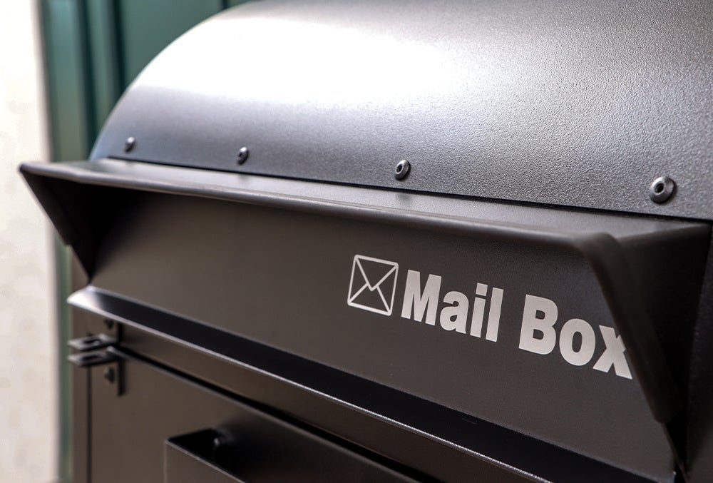 A4サイズ対応の大き目な投函口。カタログなど大き目の郵便物が入ります。(投函口サイズ:約34.4×4cm)