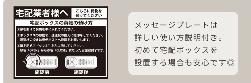 - 付属品 :印鑑ケース、メッセージプレート、非常用鍵(南京錠やワイヤーは付属しておりません)