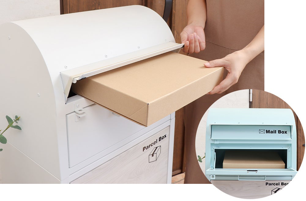 上段が郵便ポスト、下段は宅配ボックスになっている一体型の構造です。これ1台で2役をこなすので、宅配業者の方もわかりやすく、利用者の受け取りも1つの場所で済むため便利です。