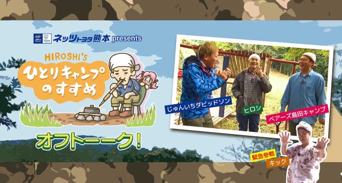 今回は会場でのイベントのみならず、オンラインイベントも開催!「阿蘇カドリードミニオン」でパフォーマンスを行う大人気ユニットPookies(プーキーズ)の仲間たちが熊本のあれこれを紹介する、ハプニング続出必至のYouTubeライブ配信のほか、特設ステージで行われる「ヒロシのひとりキャンプのすすめ」トークライブも、オリジナルグッズ付きの特別配信でお届け。県内のみならず、会場に足を運ぶのが難しい県外の方にもお楽しみいただけます。