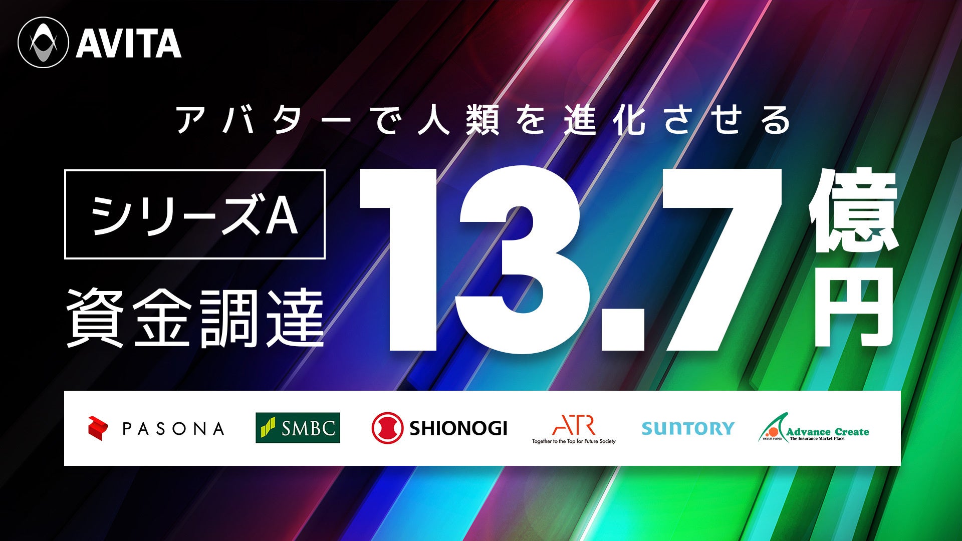 アバターや生成AI技術を活用したサービスを開発・提供するAVITA株式会社(本社:東京都品川区、代表取締役社長CEO/CTO:石黒浩、以下「AVITA」)は、シリーズAラウンドで株式会社パソナグループ、株式会社三井住友銀行、塩野義製薬株式会社、株式会社国際電気通信基礎技術研究所、サントリーホールディングス株式会社、株式会社アドバンスクリエイトの事業会社6社から13.7億円の資金調達を実施したことをお知らせいたします。当社はこれまでに5.2億円の資金調達を実施しており、累計調達額は18.9億円となります。