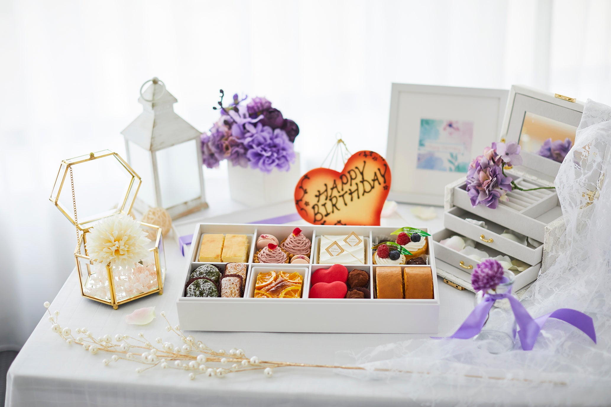 ・パティシエこだわりのアフタヌーンティーBOX「スイーツコレクション」をルームサービスにてお届け(時間15:00~22:00)※推しカラーのお花の装飾、メッセージ入りチョコレートプレート付き