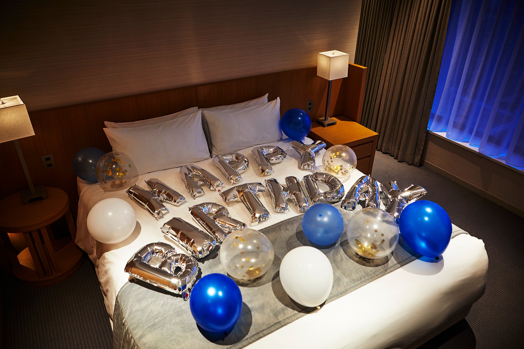 5 色から選べる推しカラーのベッド装飾や人気の韓国コスメブランド「rom&nd」のネイルポリッシュなど、推しカラーに包まれるお泊まり会がテーマのプラン。お好きなカラーのバルーンを自由に飾り付けいただき、プライベートな空間で周りを気にせず推しと一緒の時間をお過ごしください。お部屋には Blu-ray プレーヤーをお貸し出しし、テレビ画面でご持参いただいた映像も一緒にお楽しみいただけます。
