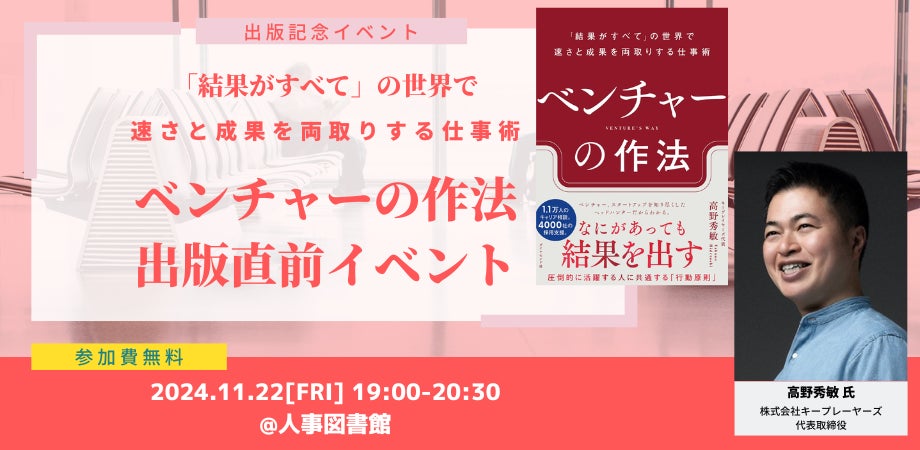 ベンチャーで成功する秘訣とは? 著者 高野秀敏氏と語る出版直前イベント|11月22日(金)19:00~人事図書館にて交流イベント開催!