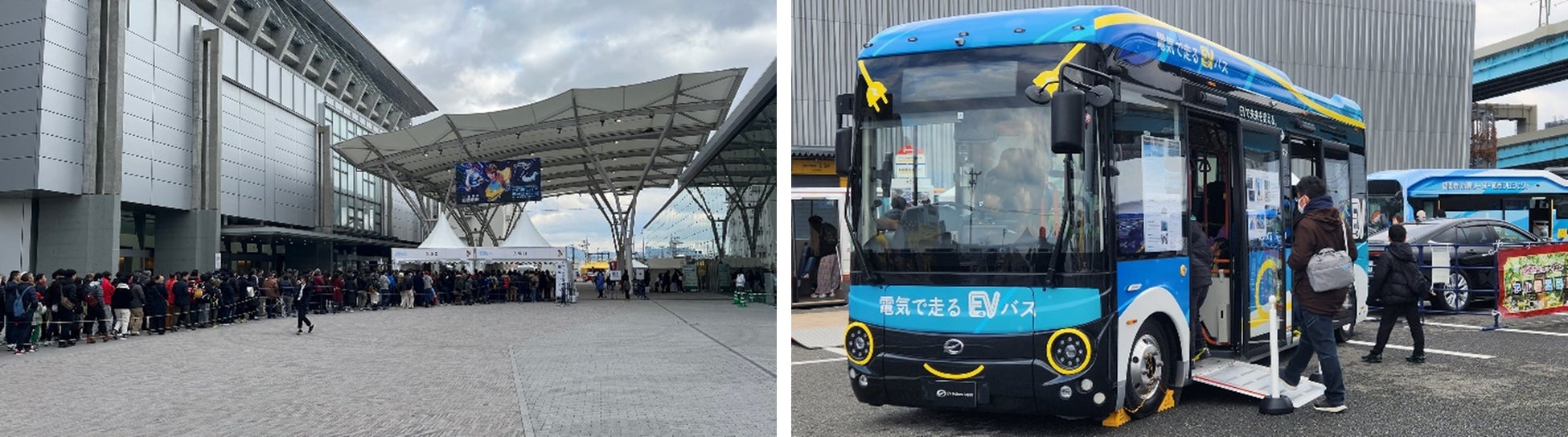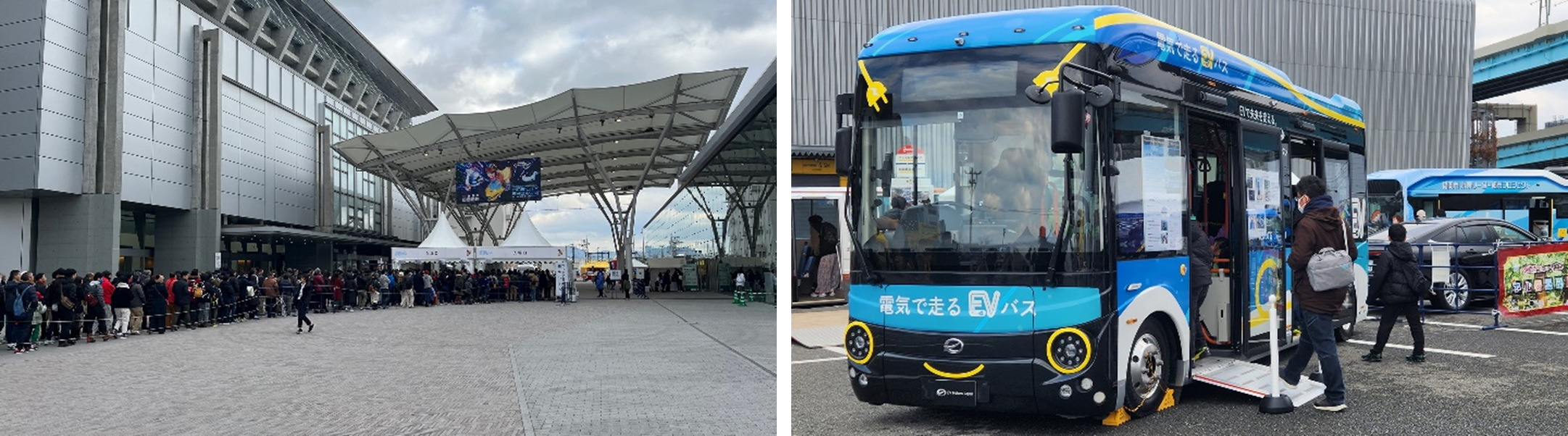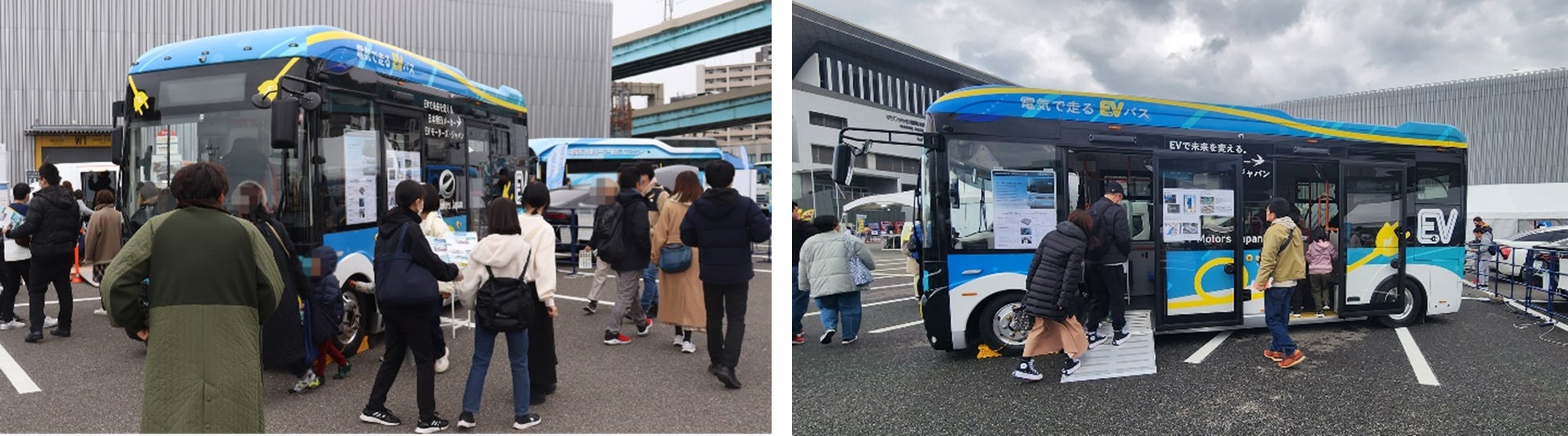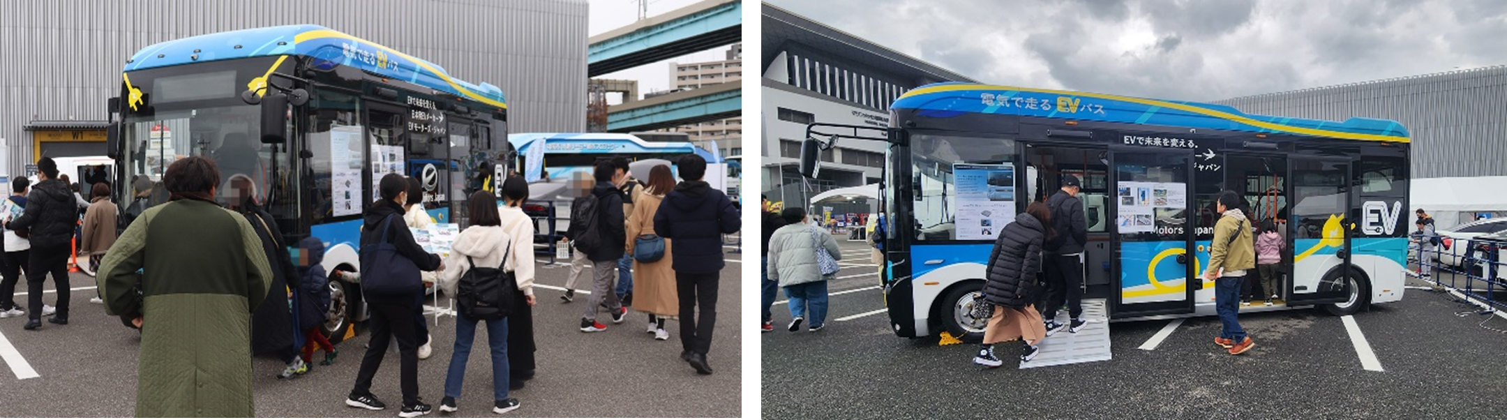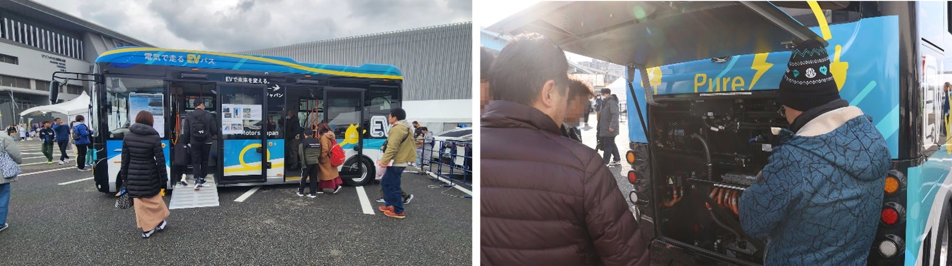 株式会社 EV モーターズ・ジャパン (本社:福岡県北九州市若松区、代表取締役社長:佐藤 裕之) はこの度、12月22日(金)から12月25日(月)の4日間、マリンメッセ福岡で開催された「FUKUOKA MOBILITY SHOW 2023」にて小型コミュニティEVバスを出展いたしました。