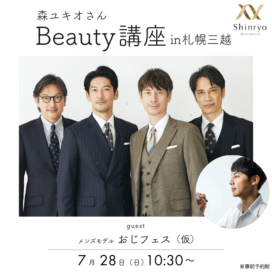 トークイベントではヘアメイク歴28年、数々の女性誌の表紙も手掛ける森ユキオさんご自身の経験に基づき、水素の体感や水素の最新研究をご紹介します。水素は日々トピックスが更新されており、高濃度水素ゼリーが、水素サプリメントとしては日本初※の機能性表示食品として受理されたほか、 日本食糧新聞社主催の「令和5年度 新技術・食品開発賞」を受賞するなど一層注目を集めています。ゲストには、Shinryo Healthcareイメージキャラクターを務めるメンズモデルユニット・おじフェス(仮)をお招きします。森ユキオさん、おじフェス(仮)のみなさんの若々しさの秘訣と、健康や美容に関するお話を繰り広げます。