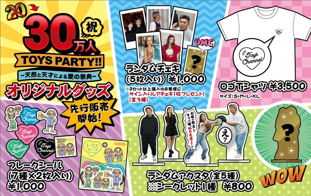 カップルYouTuber「トイズチャンネル」のオフ会イベント『祝30万人 TOYS PARTY!!~天然と天才による愛の祭典~』の開催を記念して、オフィシャルグッズを先行販売いたします!
