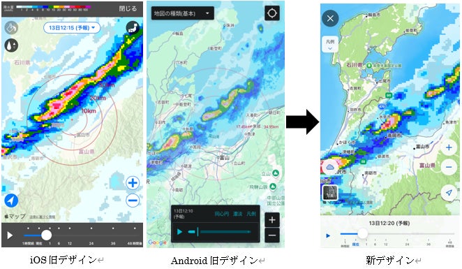 そこで今回、操作性と視認性の向上を軸に、雨雲レーダーの画面デザインと機能を全面的に見直すためのアップデートを行いました。