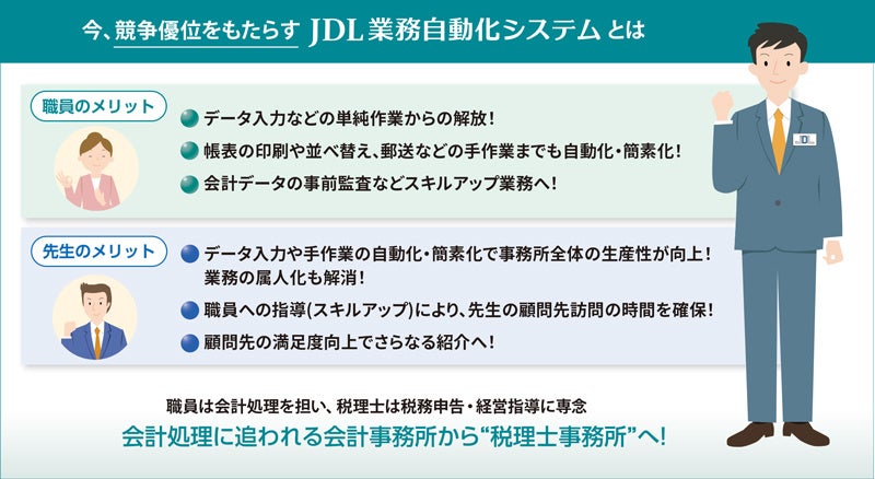 データ入力はもちろん、日々の“手作業”までも自動化。 新構想「JDL業務自動化システム」で会計事務所はこう変わる!