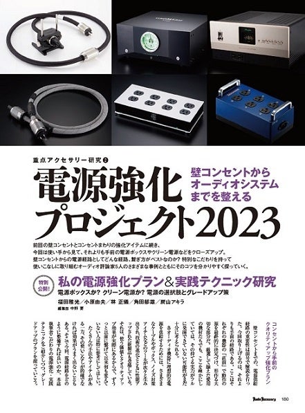 電力が原動力となるオーディオ機器にとって、電源供給がいかにスムーズに行えるかが、オーディオ再生を左右します。ここでは、そんな電源強化を大研究。前号での壁コンセントとコンセントまわりの強化アイテムに続き、今回は電源ボックスやクリーン電源などをクローズアップ。電源経路や繋げ方など、本誌で活躍する5名の評論家諸氏が自らの事例をあげて解説していきます。