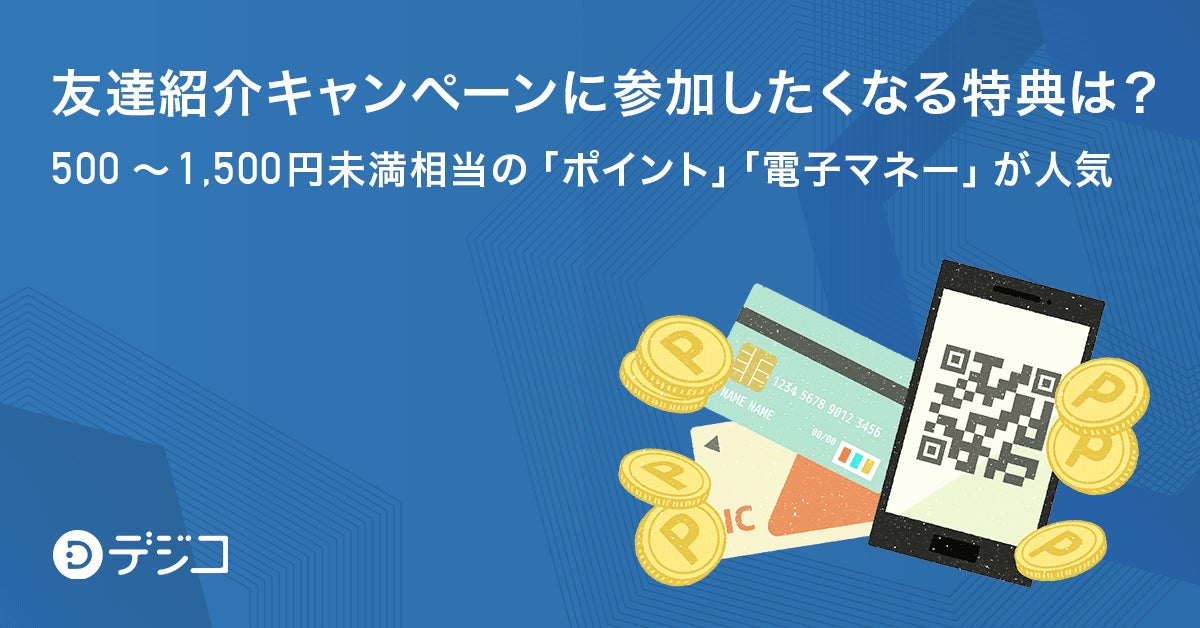 友達紹介キャンペーンに参加したくなる特典は?500〜1,500円未満相当の「ポイント」「電子マネー」が人気
