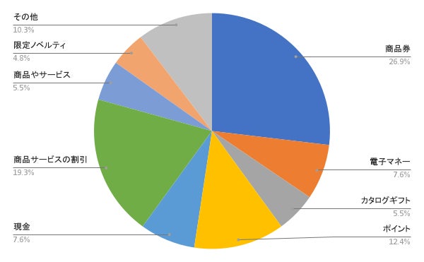 紹介キャンペーンに参加した際に受け取った特典として多く回答があったのは、「(紙の)商品券」(26.9%)、次いで「(キャンペーン対象の)商品やサービスの割引」(19.3%)でした。