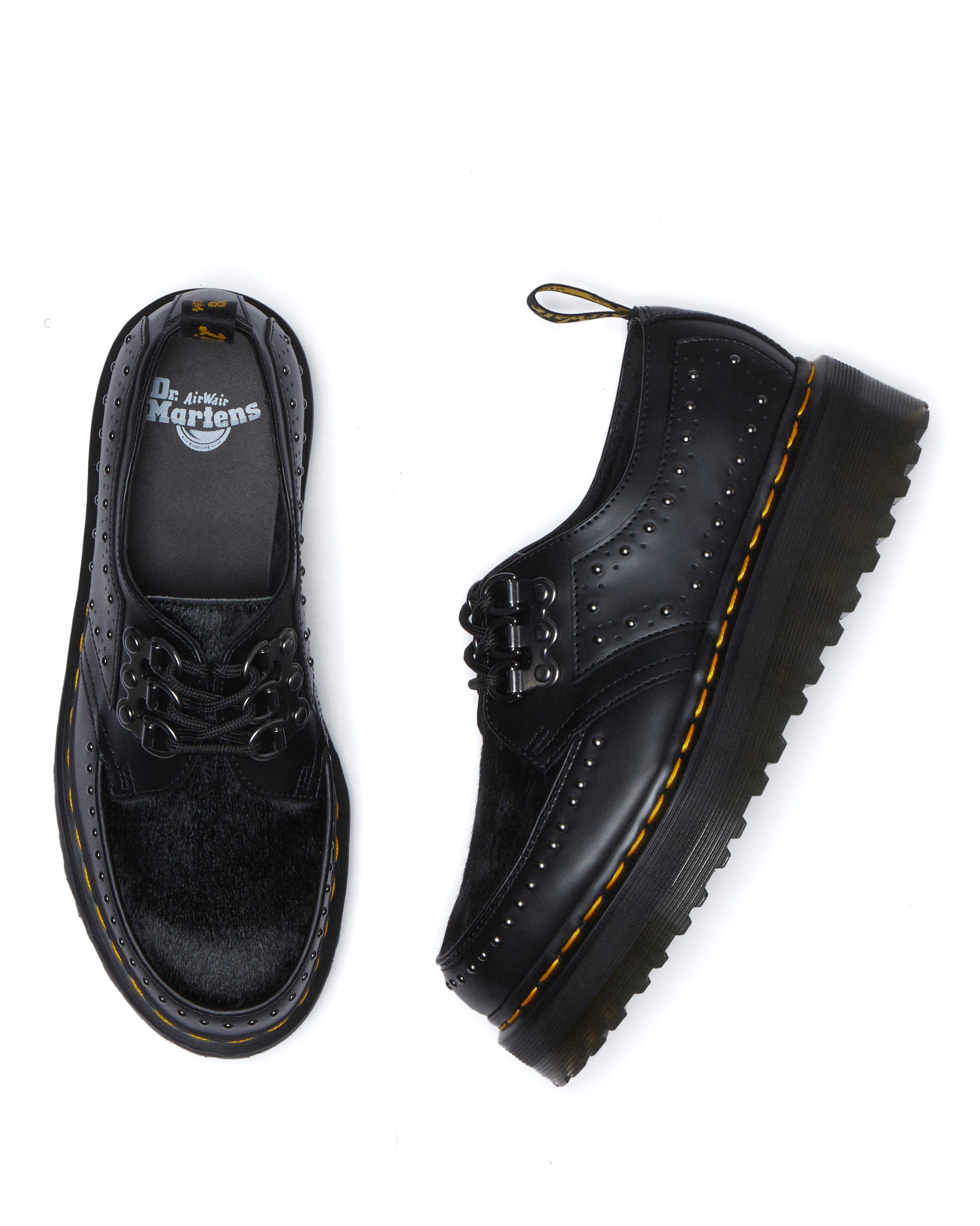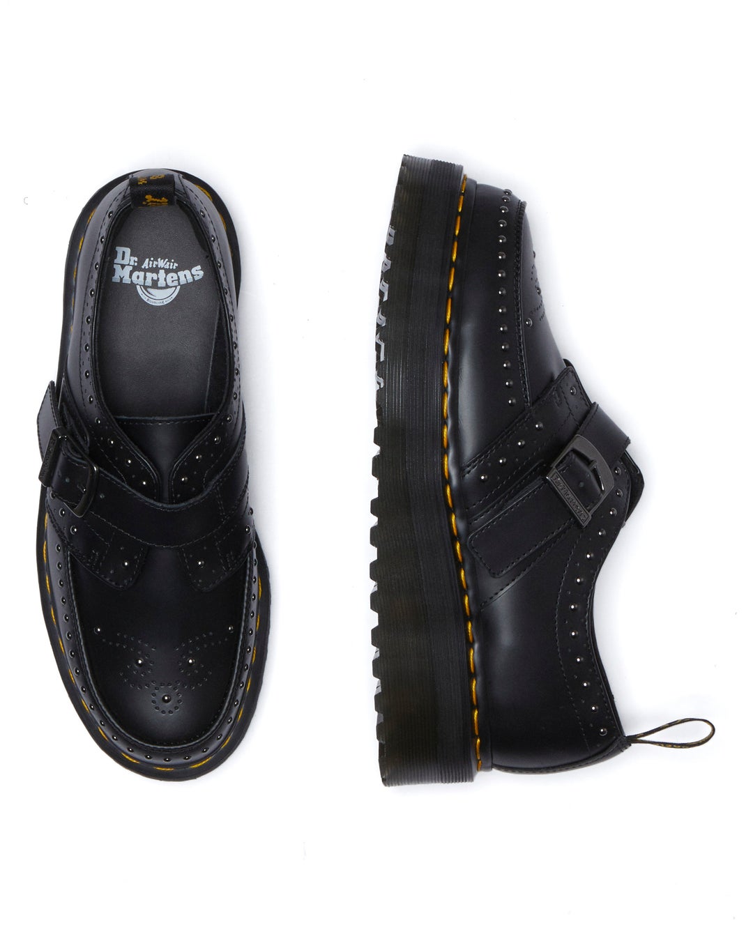 クリーパーとドクターマーチンのヘリテージの歴史は、50年以上前に遡ります。既成概念にとらわれない、メインストリームから逸脱した、型破りなサブカルチャーを作り上げてきた人々に愛されてきたデザイン。最新コレクションではクリーパーをアップグレードし、厚底のQuadウェッジアウトソールを採用し、高さを出して更なるオルタナティブなアティテュードを加えています。伝統的なブラックのスムースレザーを使用し、ガンメタルスタッズでひねりを効かせています。モンククリーパーにはガンメタルバックルとスタッズ付きのデザイン。ラムジークリーパーには、3ホールリングレーシングシステムを採用し、アッパーにスタッズ、ヴァンプにはブラックのヘアオンレザーを配した印象的なデザインです。いずれも、アイコニックなイエローウェルトステッチとヒールループで仕上げられています。