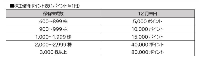 繰越条件:株主優待ポイントは12月末日に株主名簿に同一株主番号で連続2回以上記載され、か