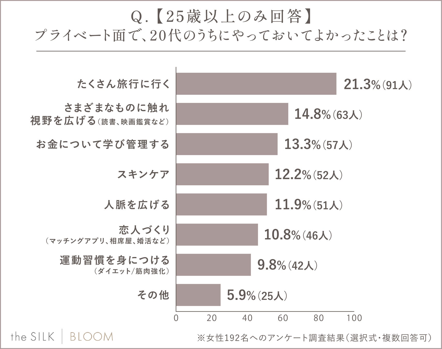 株式会社HYV(本社:東京都目黒区、代表取締役:茅野 航平)が運営する「the SILK BLOOM」では、「20代の女性がやっておくべきこと」に関するアンケート調査を実施いたしました。