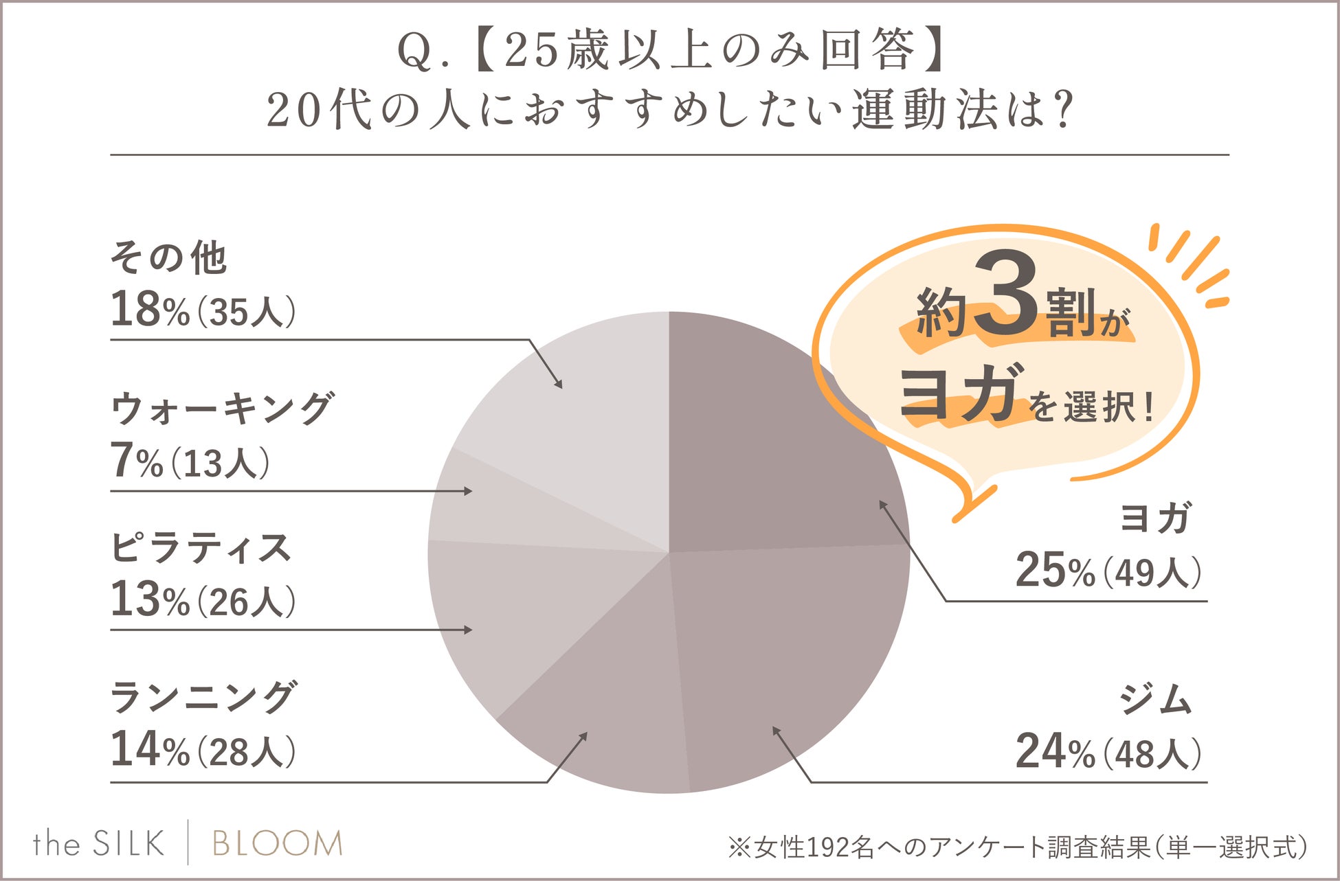 ヨガやピラティスなど、女性に人気の運動法が多く挙がっており、負荷が大きすぎず継続しやすいものであることがわかりました。