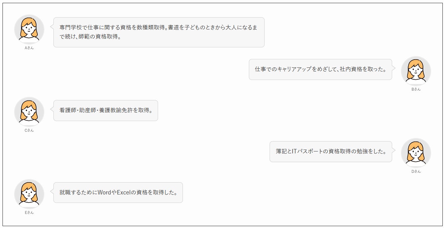 資格取得をした人においては、大きく分けて「やりたいことが決まっており、専門的な資格を取得した人」と、「なんとなく興味があったり、一般的に必要な簿記などを取得した人」がいました。