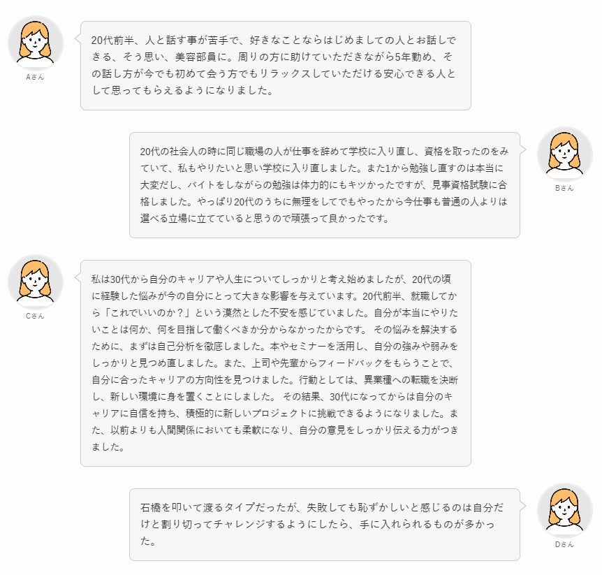 30代以上の女性から20代女性に向けてメッセージをもらったため、未来の自分からのメッセージと思って以下の年代別メッセージをチェックしてください◎