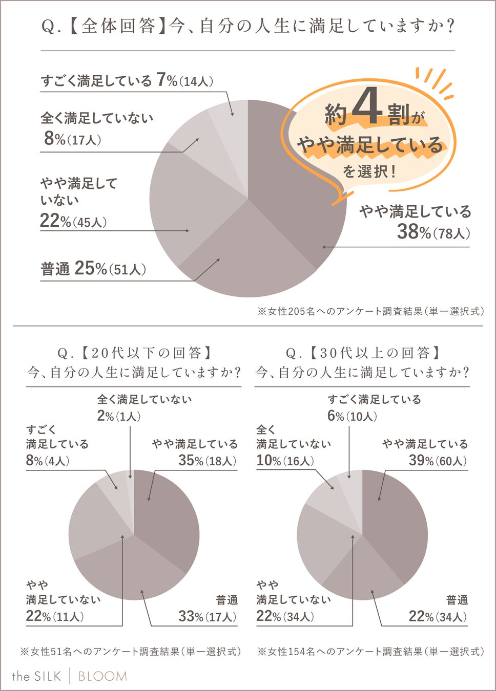【女性205人の声】今、人生に満足しているのか?を聞いてみた