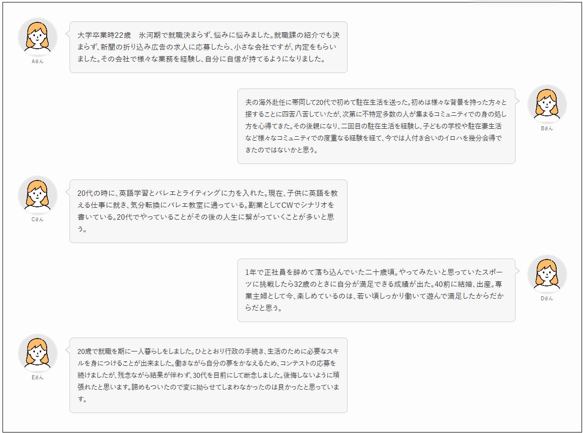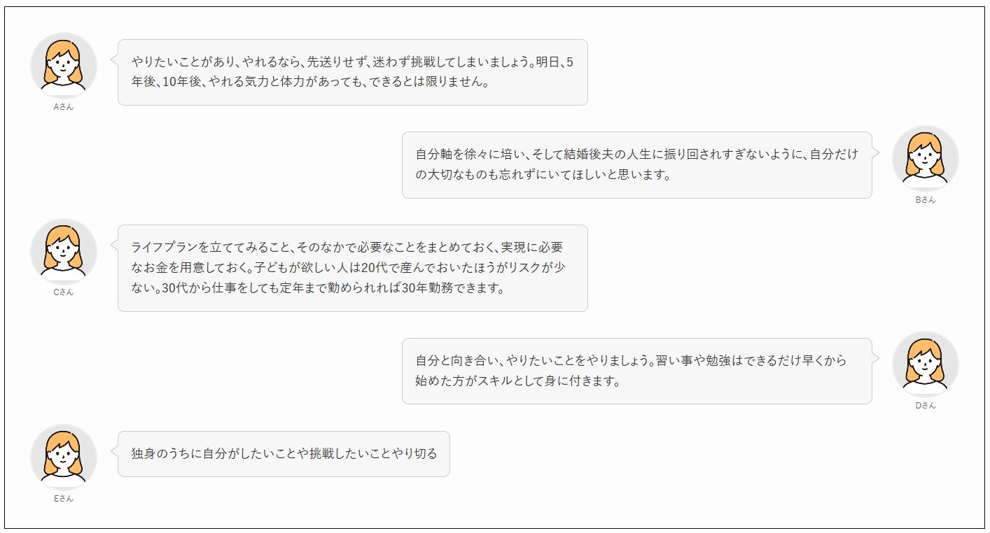 同年代の悩みや人生の先輩の貴重な経験談をふまえて自身と向き合いながら、充実した人生設計のヒントを見つけてみましょう!