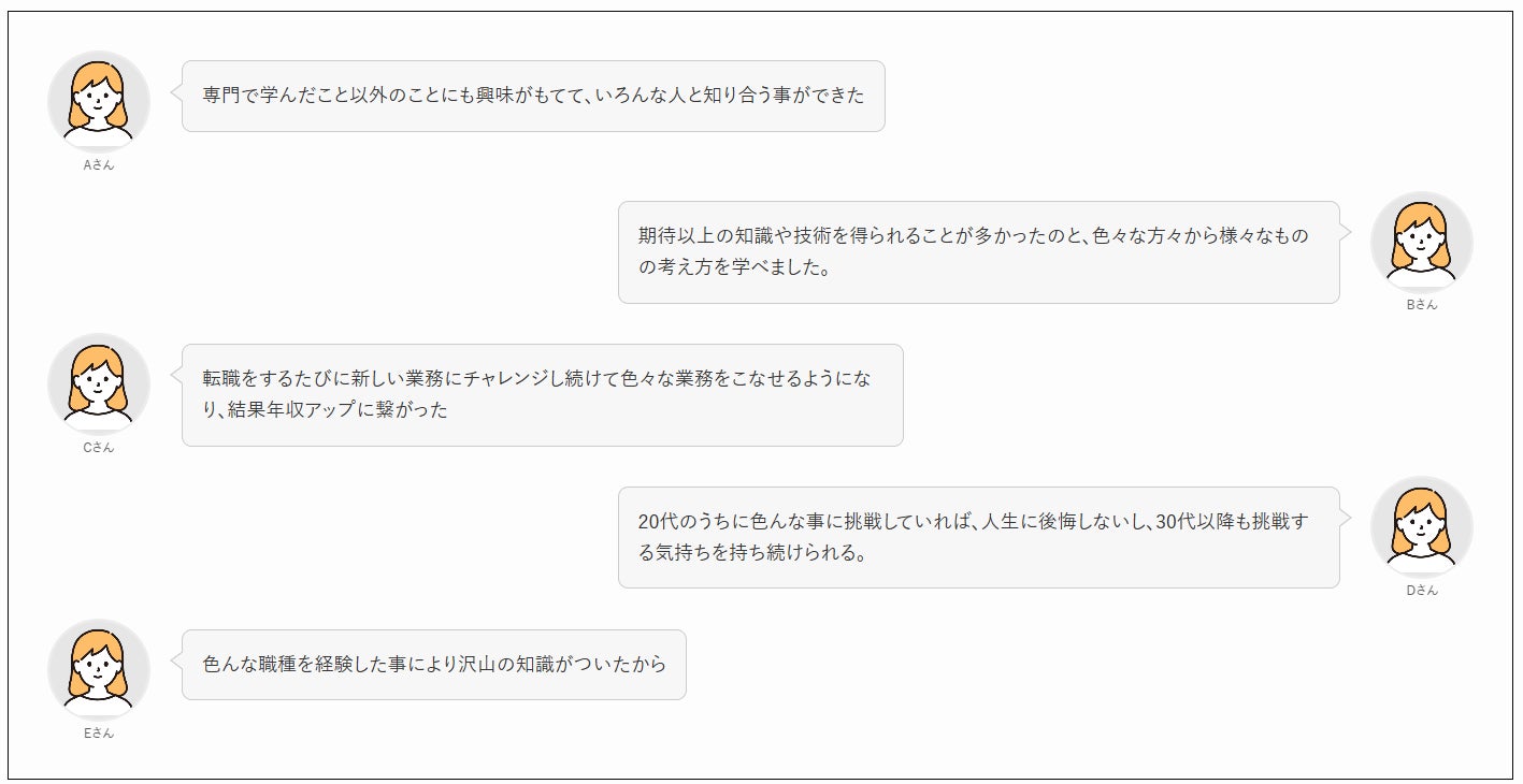 一つの環境に留まらず様々な職場や仕事内容を経験することで、自分に合った働き方を見つけることができたり、スキルが向上し収入アップに繋がるという意見が多く見られました。