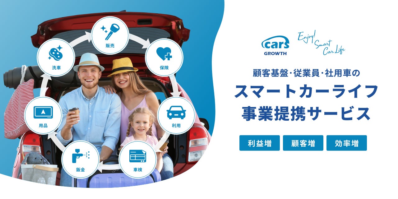 「cars GROWTH」は、自動車業界とのcarsネットワークを活用した異業種企業の顧客基盤・従業員・社用車を 新たなスマートカーライフ事業提携サービスで、利益増・顧客増・効率増を実現します。