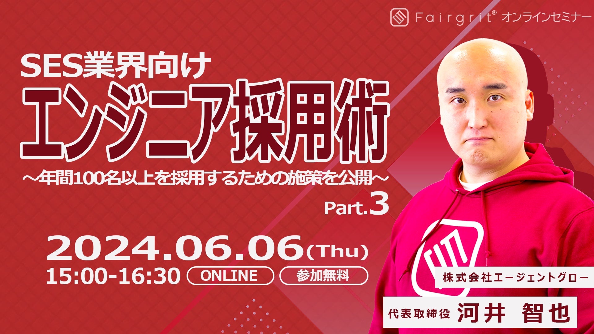 株式会社エージェントグロー(本社:東京都港区、代表取締役:河井智也/以下、「当社」)が毎月開催しているSES企業様を対象にした無料オンラインウェビナーにつきまして、2024年6月度の開催内容と日程が決定いたしました。