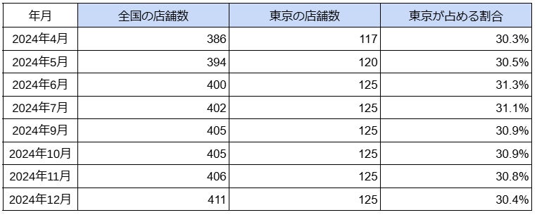 ■2024年12月の国内「アミューズメントポーカールーム」店舗数は411件