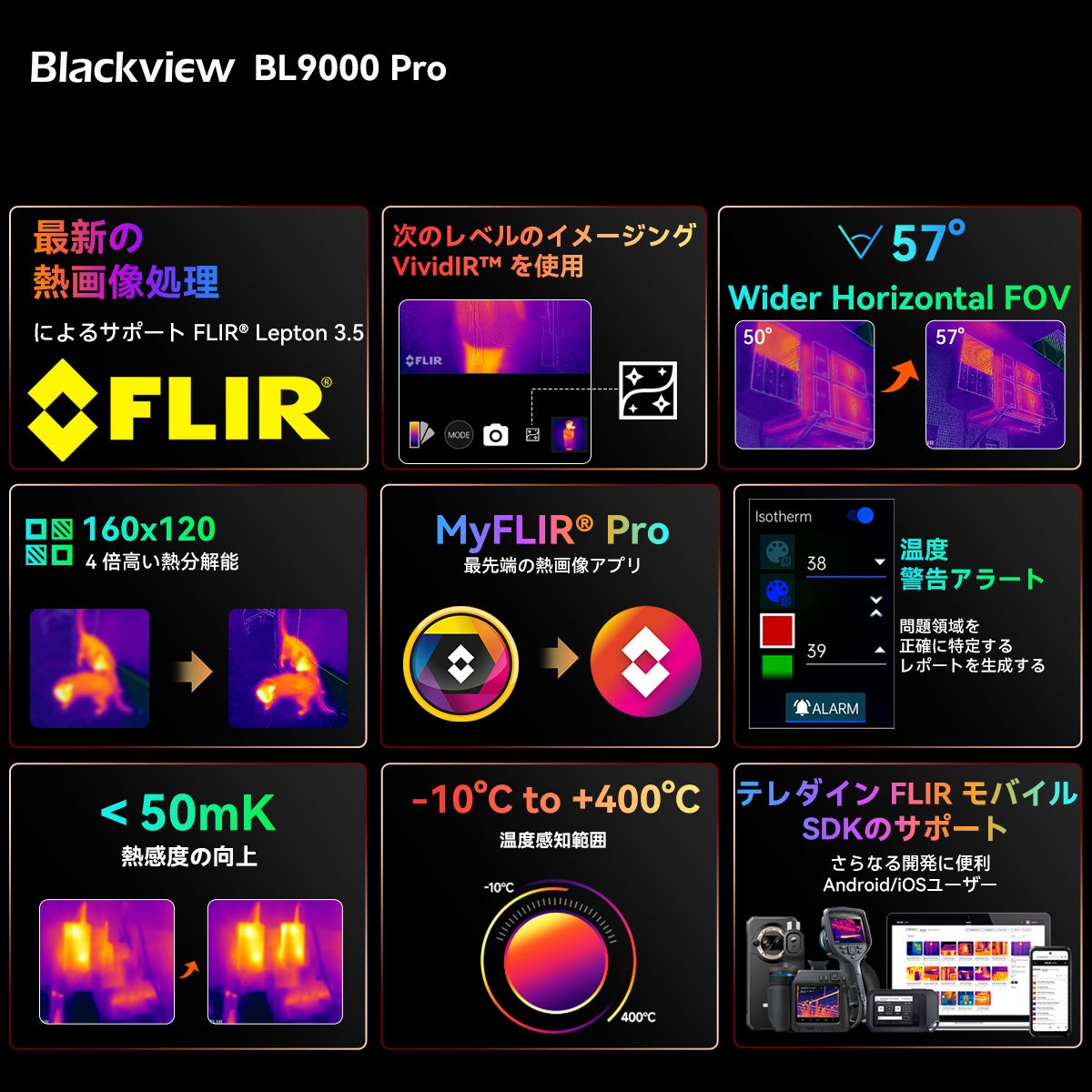 BL9000 Proにはアップグレードされたサーマルカメラが内蔵されており、VividIR™技術と組み合わせることで、より鮮明で正確な熱源画像(サーマル画像)を撮影することが可能となっています。さらに「Teledyne FLIR Mobile SDK」への対応により、Android/iOSユーザー向けの対応アプリ開発の可能性も広がっています。