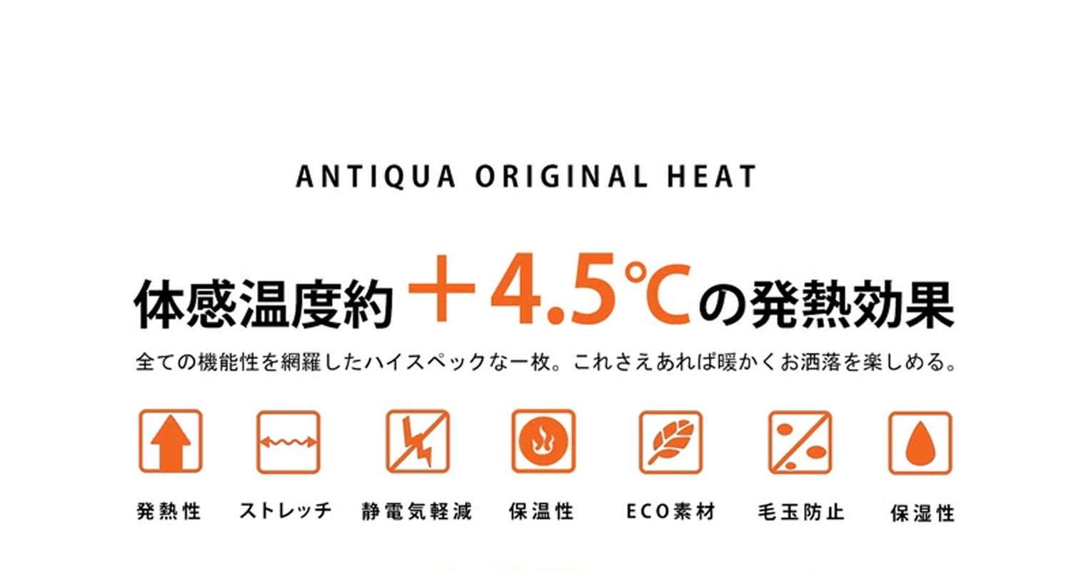 幅広い年齢層に支持されるファッションブランド&セレクトショップ『ANTIQUA(アンティカ)』を運営する株式会社antiquaはこのたび自社オンラインショップにて、大ヒットしたオリジナル商品「ヒートロンT」と同じ吸湿発熱素材を使用した「オリジナルヒートワンピース(クルーネック・ハイネック)」の販売を開始いたしました。