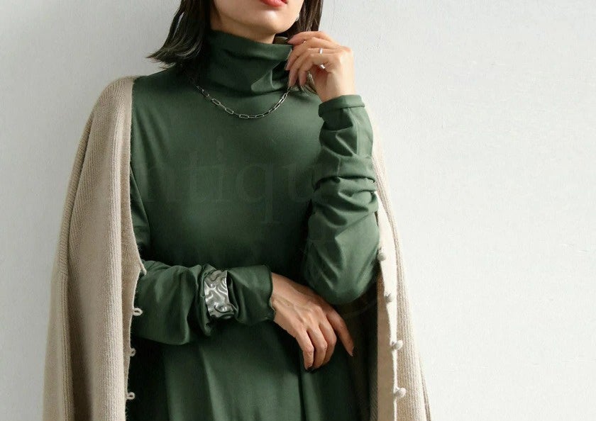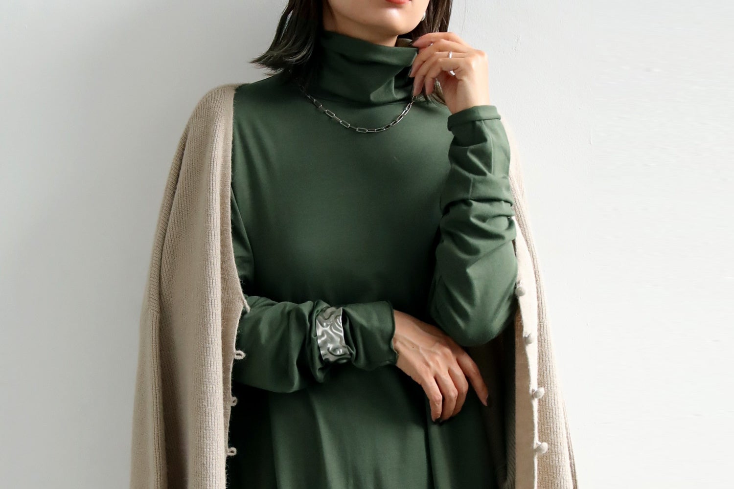 水分を吸収して熱エネルギーに変換する吸湿発熱素材から生まれた「ヒートロンT」に続くオリジナルワンピース。体感温度+4.5℃で毎日冷え知らず。飽きか来ず、色違いで毎日着まわしたくなる万能さです。