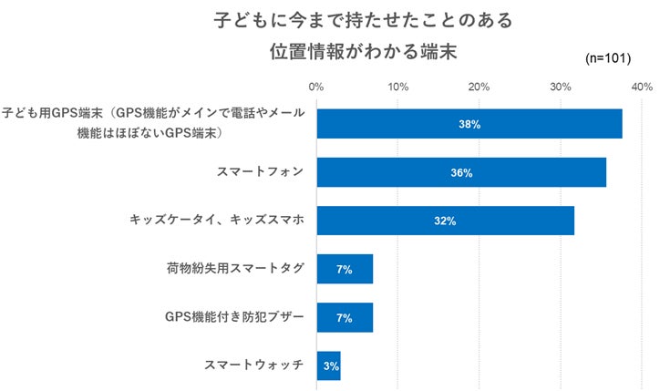 子どもの迷子などへの対策として位置情報がわかる端末を利用する家庭が多く、実際に利用したことのある端末としては、「リーズナブルな料金」「ネットトラブルを避けられる」「頻繁な充電が不要」の理由で、電話やメール機能を持たない子ども用GPS端末が、スマートフォンやキッズケータイなどよりも多く利用されていることがわかりました。