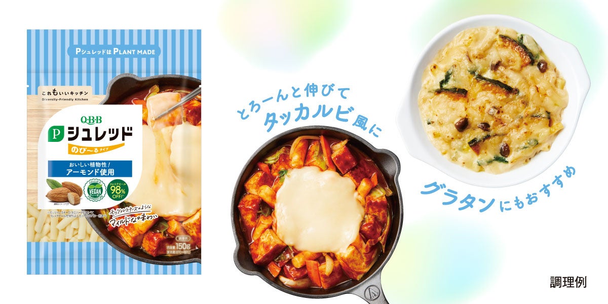 チーズのような伸びを付与した『Pシュレッドのびーるタイプ150g』がQBB PLANT MADEシリーズに加わり、家庭用ラインナップは2品体制に。