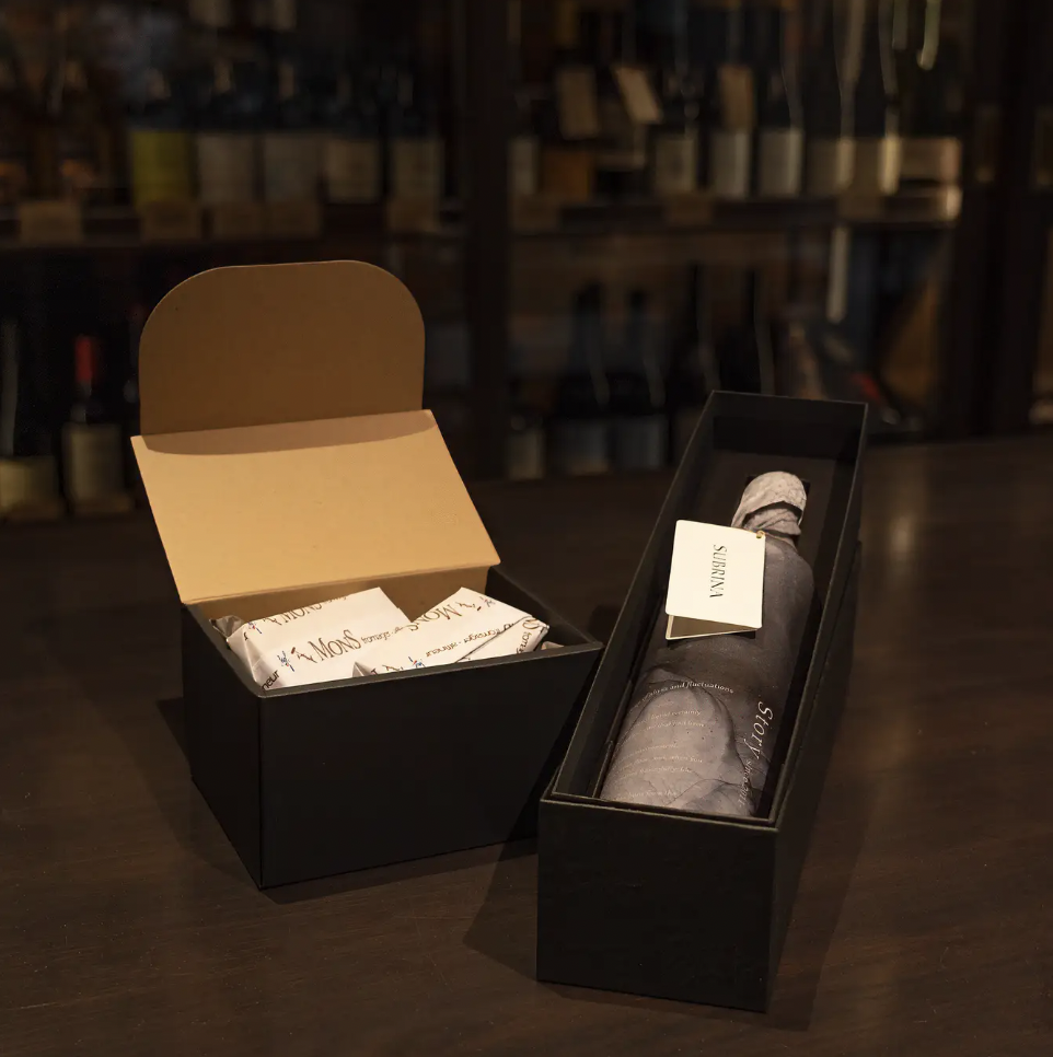 ワインと2種のチーズは、それぞれギフトボックスに入れてお届けします。