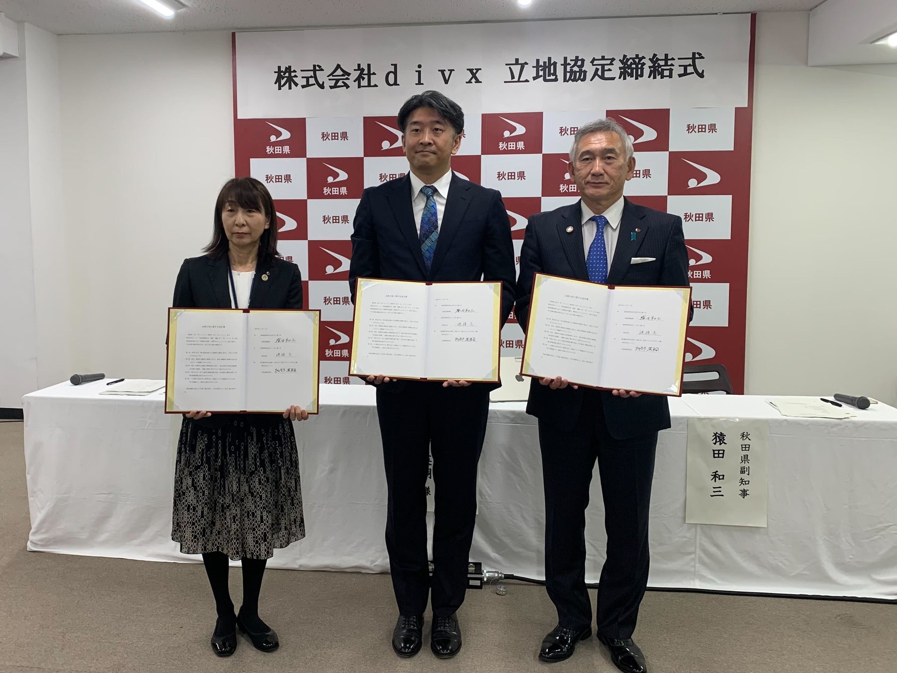 2021年に創業しAIを活用したサービス開発を通して民間企業と公共機関のDX支援を行う株式会社divx(本社:東京都渋谷区、代表取締役社長:物部 英嗣、以下「DIVX」 )は、2024年11月15日付で、秋田県および秋田市と立地協定を締結しました。