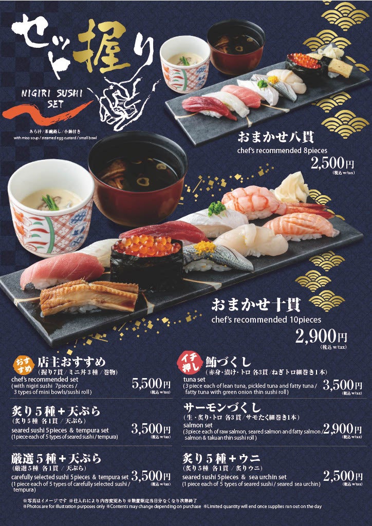 ・店主おすすめ(握り7貫/ミニ丼3種/巻物) 5,500円