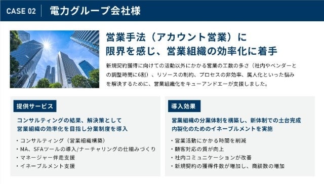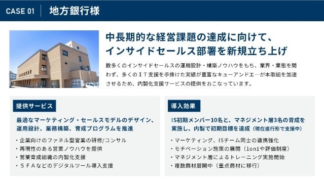 営業DXを推進するキューアンドエー株式会社(東京本社:東京都渋谷区)は、営業戦略の設計から営業人材の育成/実働支援まで対応可能な伴走型セールスイネーブルメントサービスを提供。
