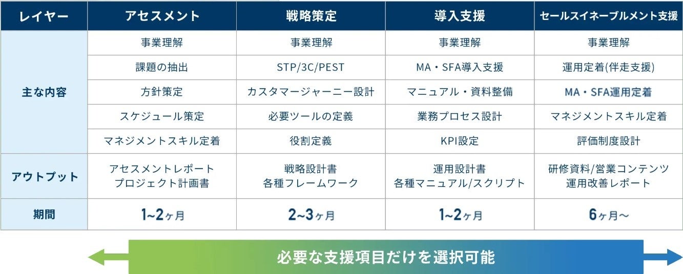 営業組織の持続的な成長を促す戦略策定やセールスイネーブルメント支援をパッケージ化して提供