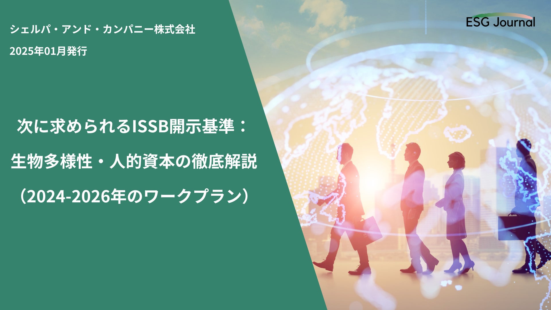 シェルパ・アンド・カンパニー株式会社(本社:東京都品川区、代表取締役CEO 杉本淳、以下シェルパ)は、シェルパが運営するサステナビリティ・ESG特化メディア「ESG Journal」において、新たなホワイトペーパー「次に求められるISSB開示基準:生物多様性・人的資本の徹底解説(2024-2026年のワークプラン)」を公開したことをお知らせします。