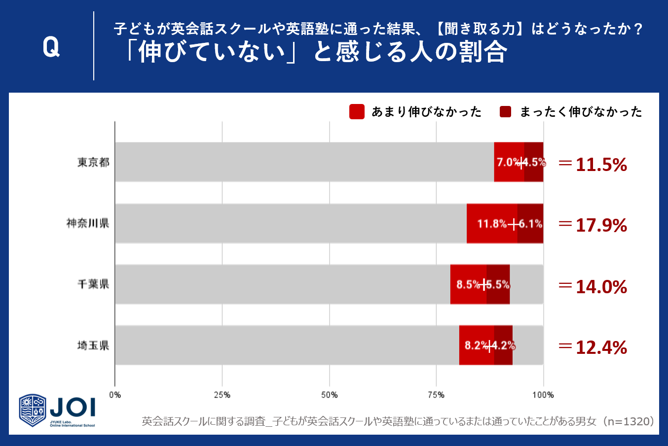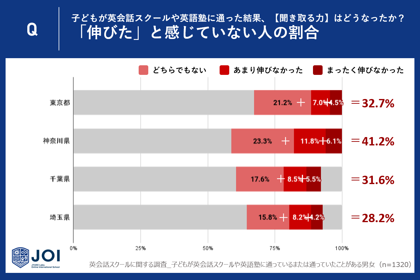 東京都と千葉県はそれぞれ32.7%、31.6%が「リスニング力」の伸びを感じていないと回答しています。