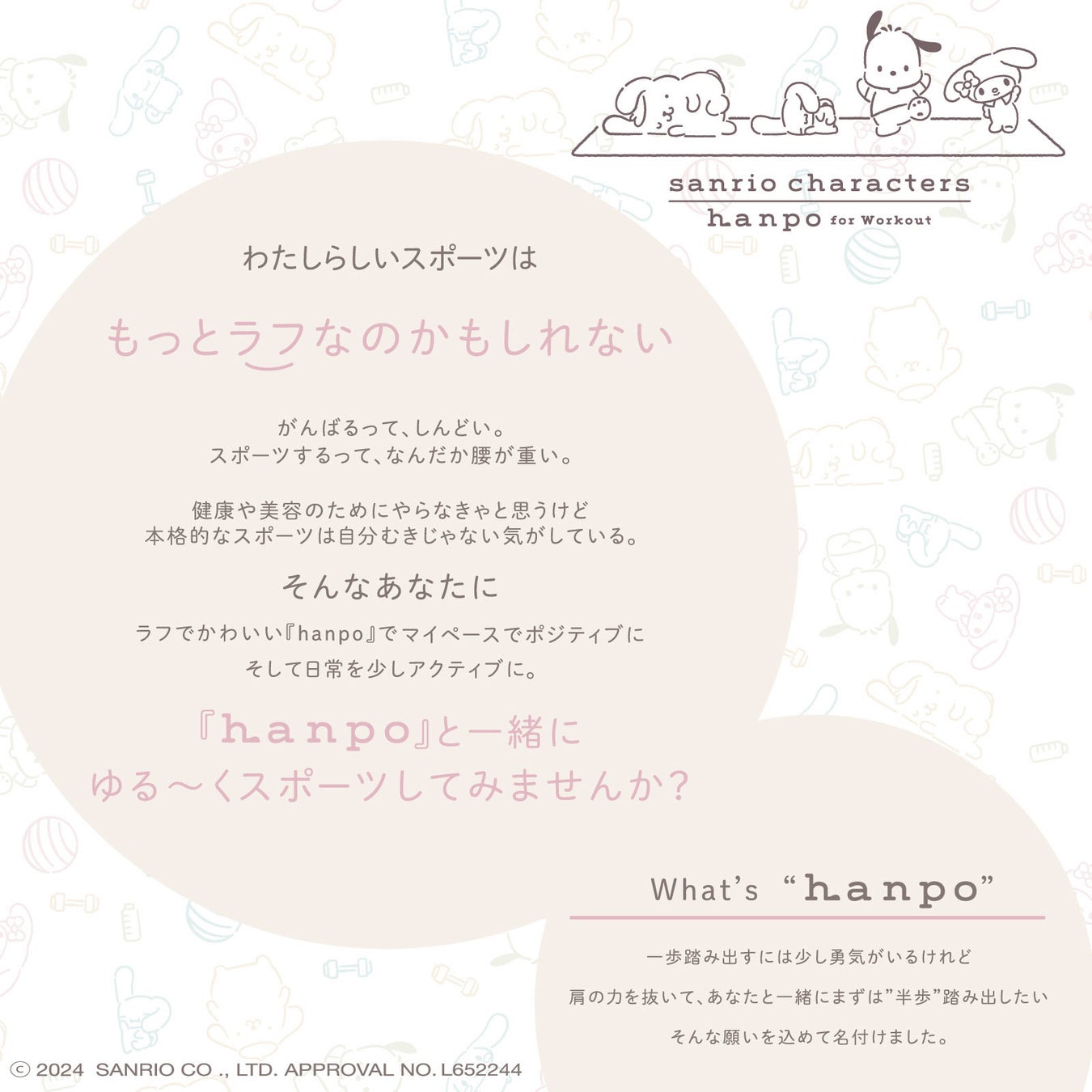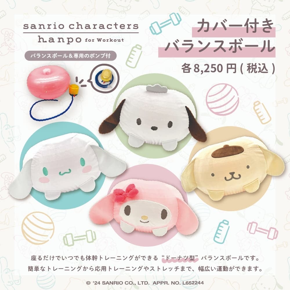 キャラクターグッズやオリジナル雑貨の企画・開発を手掛ける株式会社ヒューネット(本社:愛媛県松山市)は、新ブランド「hanpo(ハンポ)」から、株式会社サンリオのキャラクターデザインを使用したヨガマットやバランスボール、トレーニングバンドなどのフィットネスアイテムをリリースしました。