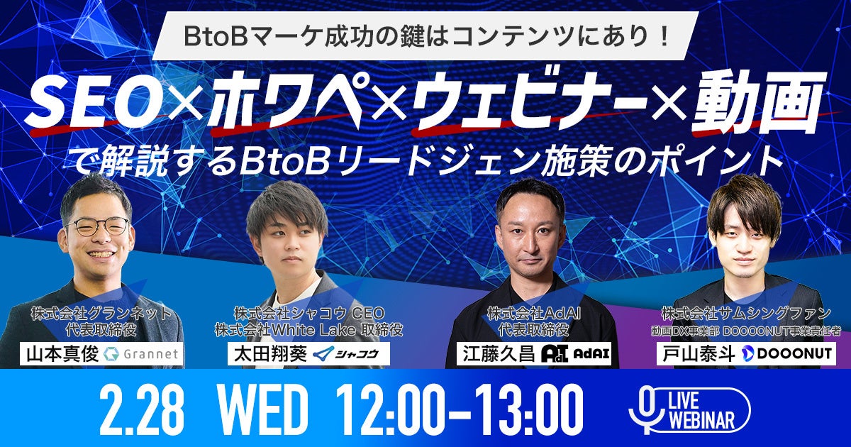 【2/28開催ウェビナー】BtoBマーケ成功の鍵はコンテンツにあり!SEO × ホワぺ × ウェビナー × 動画で解説するBtoBリードジェン施策のポイント