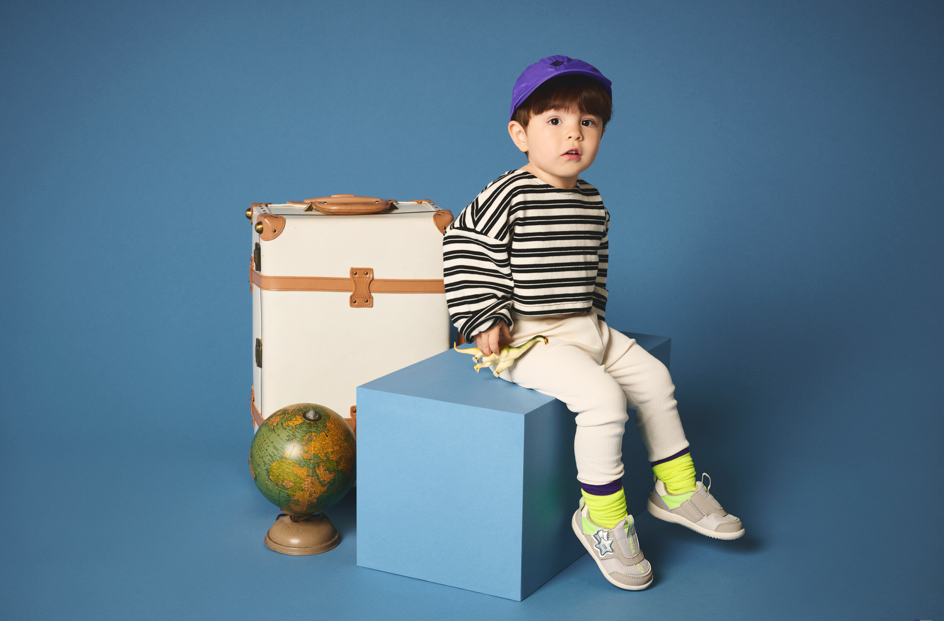 「ifme nature ほうき星 ifme patto スニーカー」は、ベルト部分に大きな「ほうき星」のモチーフが施されたデザインが特徴のスニーカーです。「ifme nature」の落ち着きのあるアースカラーを基調に、メタリック感のあるモチーフや、トレンドであるネオンカラーの差し色が、明るく元気な印象を与えます。カラーはベージュ・グレー・ブラックの3色を展開し、同デザインでベビー・キッズのサイズをご用意しました。秋冬の兄弟姉妹のお揃いコーデにもおすすめのアイテムです。