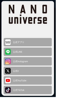 お客様はタッチ操作だけで、アプリ・LINE・Instagram・X・YouTube・TikTokなど複数の媒体へスムーズにアクセスすることができます。