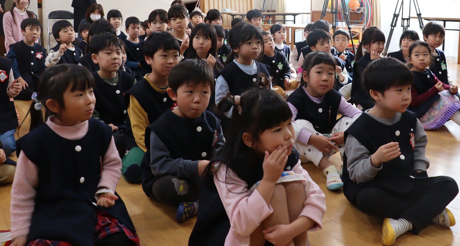 株式会社ロッテ(以下ロッテ)は、「健口スマイル推進事業の展開に関する連携協定」を締結する公益社団法人山口県歯科医師会・山口県と、口腔機能向上を目指し、今年も山口県内44園の約1000名の年長園児にフーセンガムを提供、フーセンガムトレーニングを実施しました。この度、本取り組みを受け、2024年12月20日(金)に徳山めぐみ幼稚園(山口県周南市/園長:村田 佳奈)にて「フーセンガムトレーニング クリスマス会」を実施いたしました。当日はロッテのフーセンガム名人がサンタクロースに扮し、フーセンガムを噛んで大きくふくらませる技の披露なども行いました。
