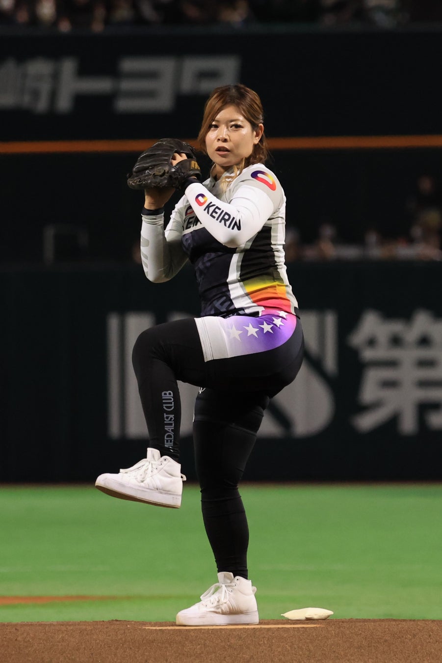 2018年以来、2度目の始球式に参加させていただきました。今年はストレートを決めたいと何度も練習をしましたが、マウンドに上がると感覚が全然違うことを実感しました。投球後、球場の皆様から大きな拍手をいただき、とても盛り上がった始球式となりました。今回のイベントを通じて、ガールズケイリンの魅力を多くの方々に届けられたら嬉しいです。